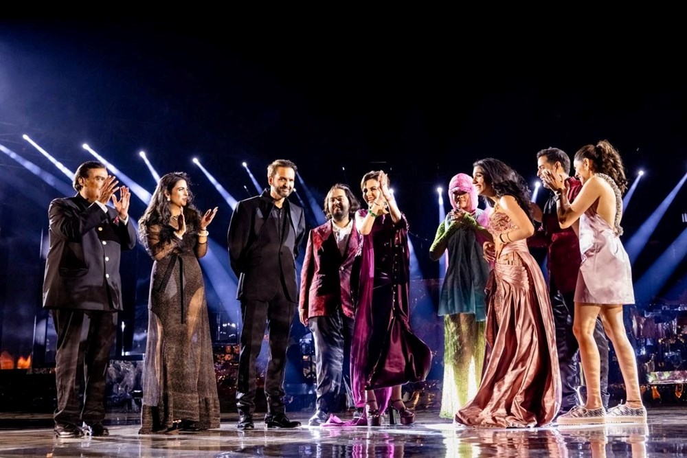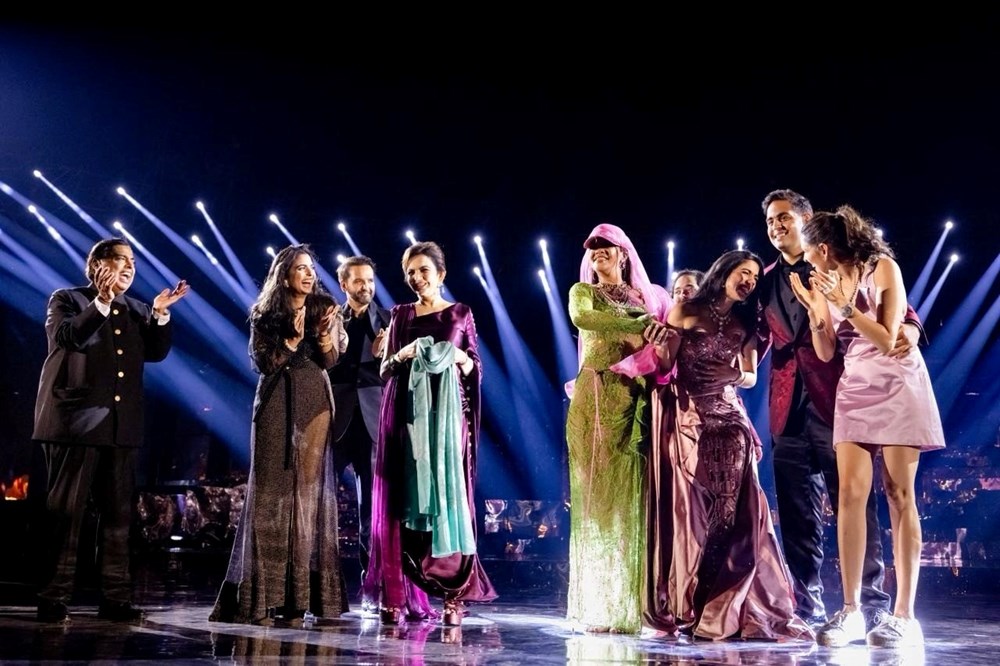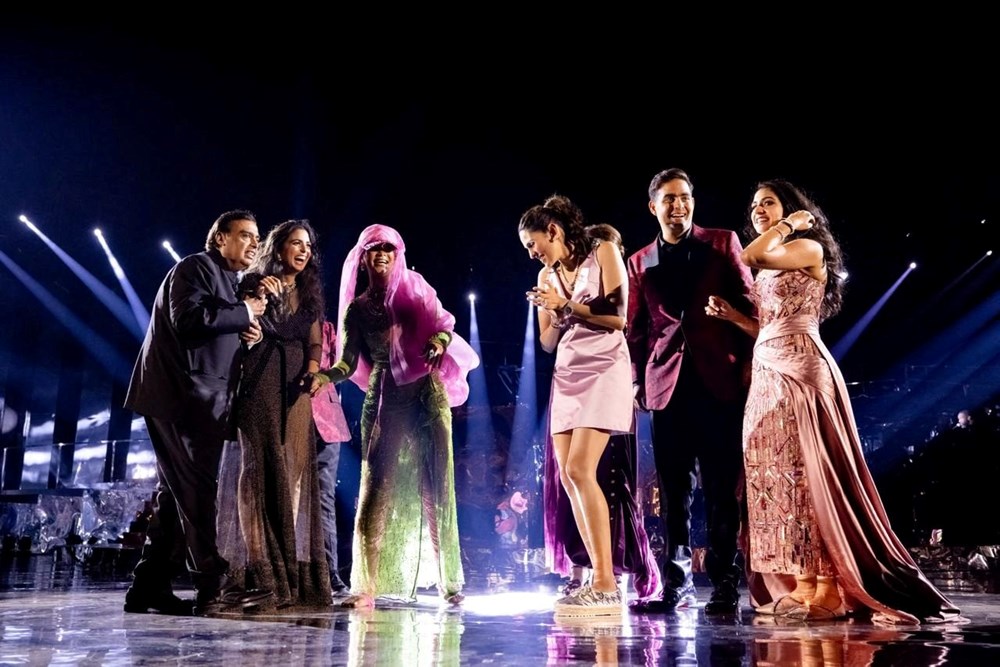 Ambani ailesi, performans sonrası Rihanna’ya sahnede eşlik etti. Şarkıcının katıldığı parti, üç gün sürecek olan partinin ilk günüydü.