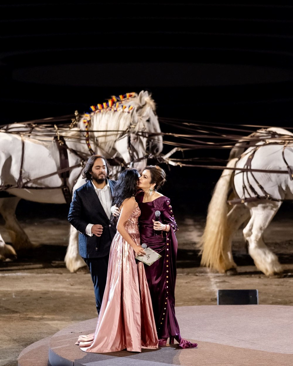 Mukesh Ambani‘nin oğlu Anant ve nişanlısı Radhika Merchant daha sonra sahneye çıkarak konuşma yaptı.
