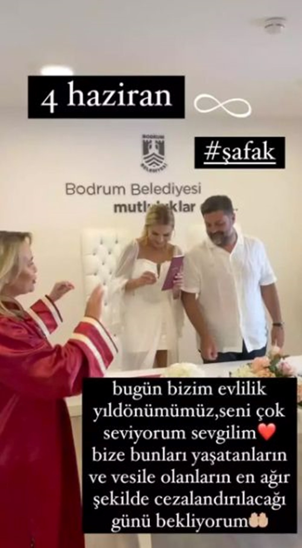 Erken, nikahtan bir karesini, “Bugün bizim evlilik yıl dönümümüz. Seni çok seviyorum sevgilim. Bize bunları yaşatanların ve vesile olanların en ağır şekilde cezalandırılacağı günü bekliyorum. Biliyorum ki her şeyi görüyorsun. Herkesin hak ettiğini yaşaması dileğiyle” notuyla yayınlamıştı.