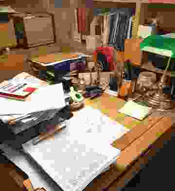 Vefatının hemen ardından; Bozkurt Hoca’nın çalışma masasının son hali.