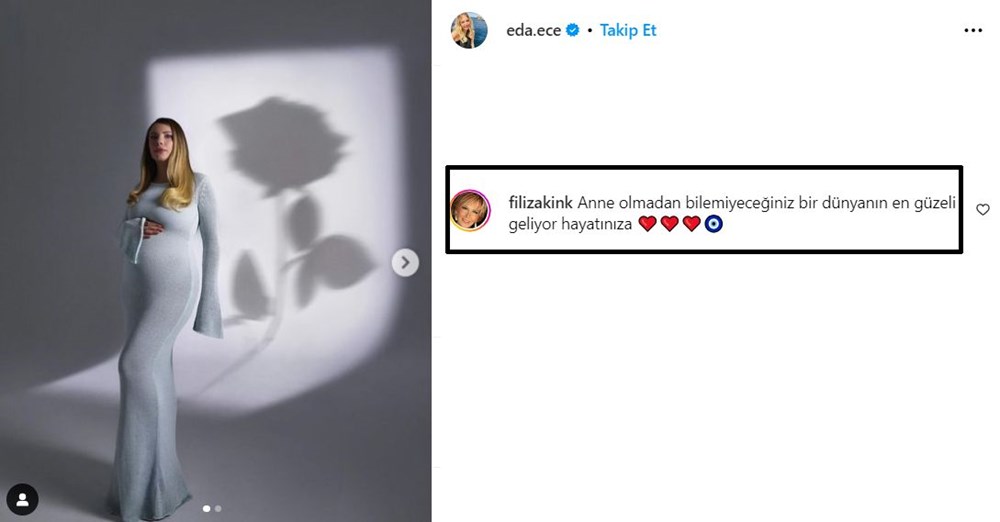 Filiz Akın, Eda Ece’ye; “Anne olmadan bilemeyeceğiniz bir dünyanın en güzeli geliyor hayatınıza” diye seslendi.