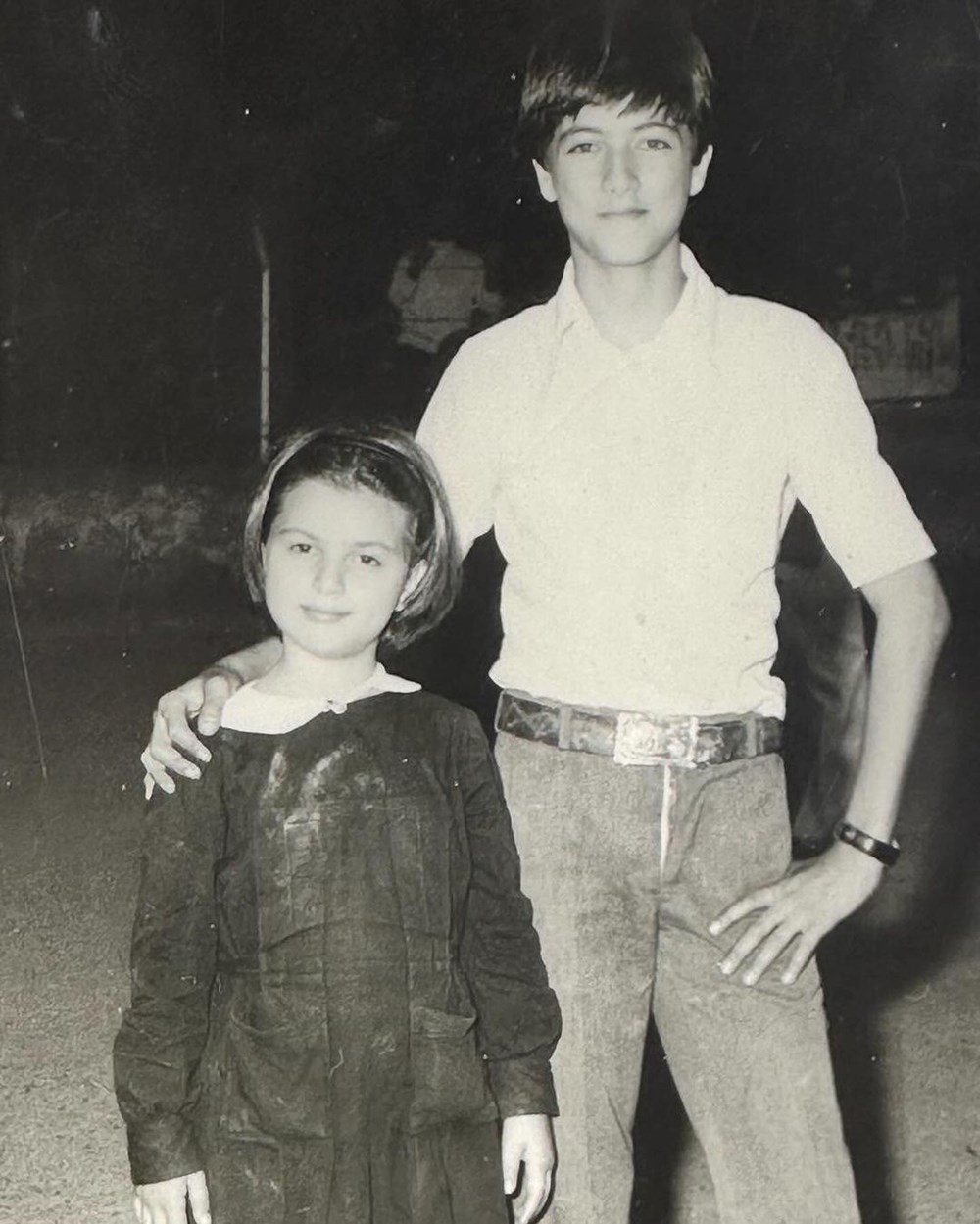 Ayrık paylaşımına “Ablam… Herkesin bir ablası olmalı gibi. Çünkü insanın ablasının olması çok tatlı, çok yakışıklı… Fotoğraftaki de benim ablam İlknur. Fotoğraf da bizim çocukluğumuz. Saç kesimim, ablamın kurdelesi, önlüklerimiz, çantam, şortum ve altındaki muhteşem bacaklarım. Ve çok şükür ki bu fotoğrafta görülmeyen ayakkabılarım. Püsküllü müsküllü Allah korusun… Stüdyodaki fonu saymadım bile…” notunu düştü.