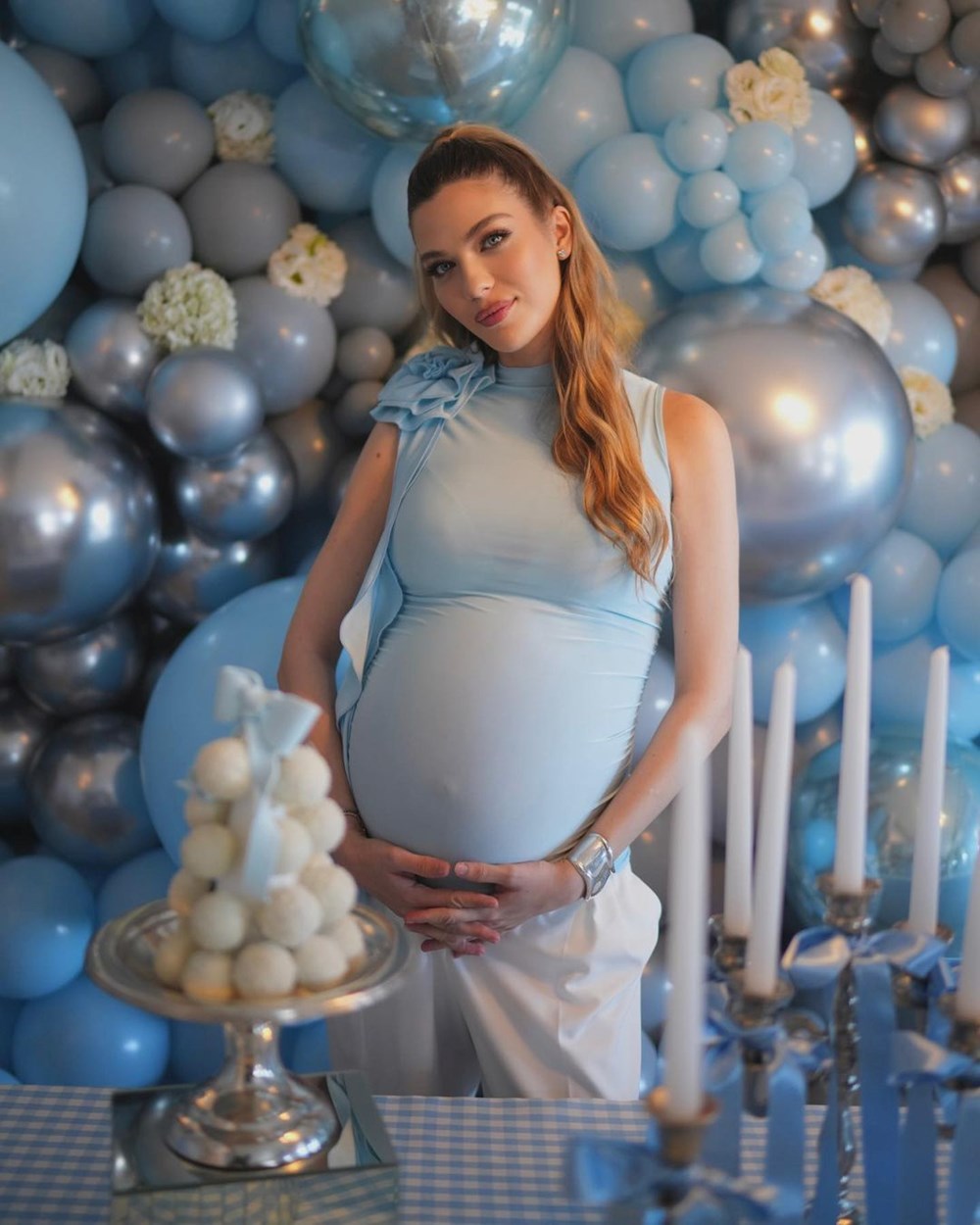 Mavilerle bezeli bir parti düzenleyen Şefkatli, kendisine yardım eden herkese teşekkür etmişti. Şefkatli’yi baby shower partisinde yakın arkadaşları yalnız bırakmamıştı.
