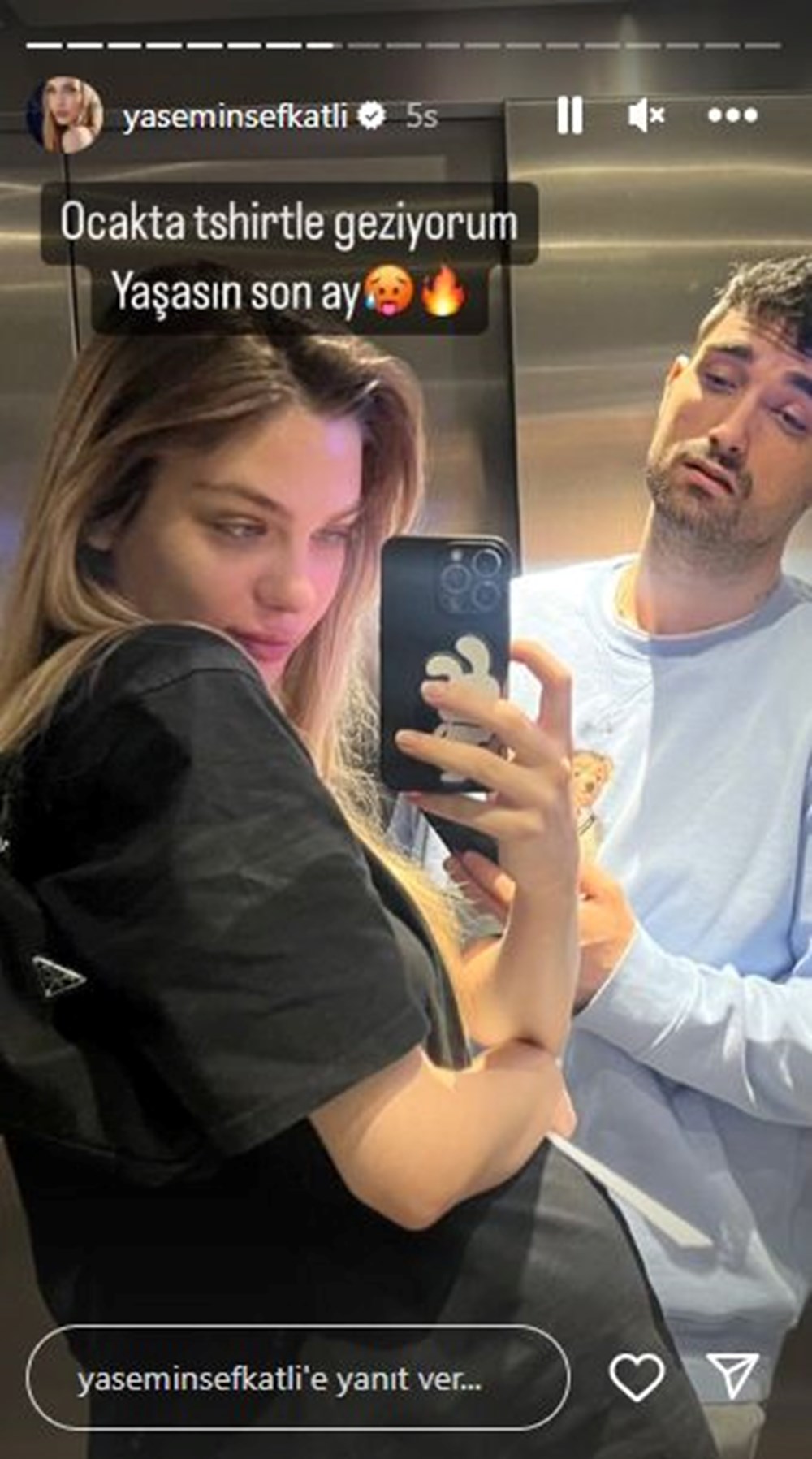 Yasemi Şefkatli önceki gün de eşi İdo Tatlıses ile asansörde verdiği poza “Ocak ayında tişörtle geziyorum. Yaşasın son ay” notunu düşmüştü.