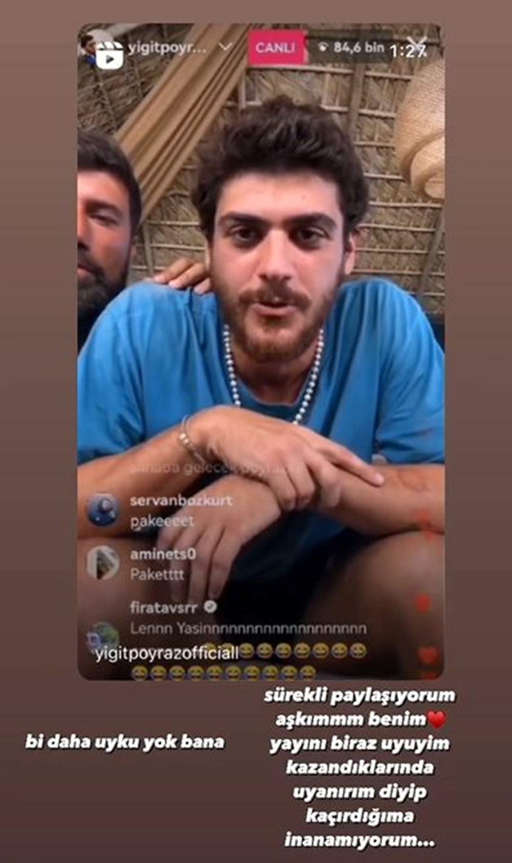 Yasmin Erbil ise daha sonra yaptığı paylaşımda uyuya kaldığını itiraf etti. Ünlü isim, “Sürekli paylaşıyorum aşkım benim. Yayını ‘biraz uyuyayım kazandıklarında uyanırım’ deyip kaçırdığıma inanamıyorum. Bir daha uyku yok bana” ifadelerini kullandı.